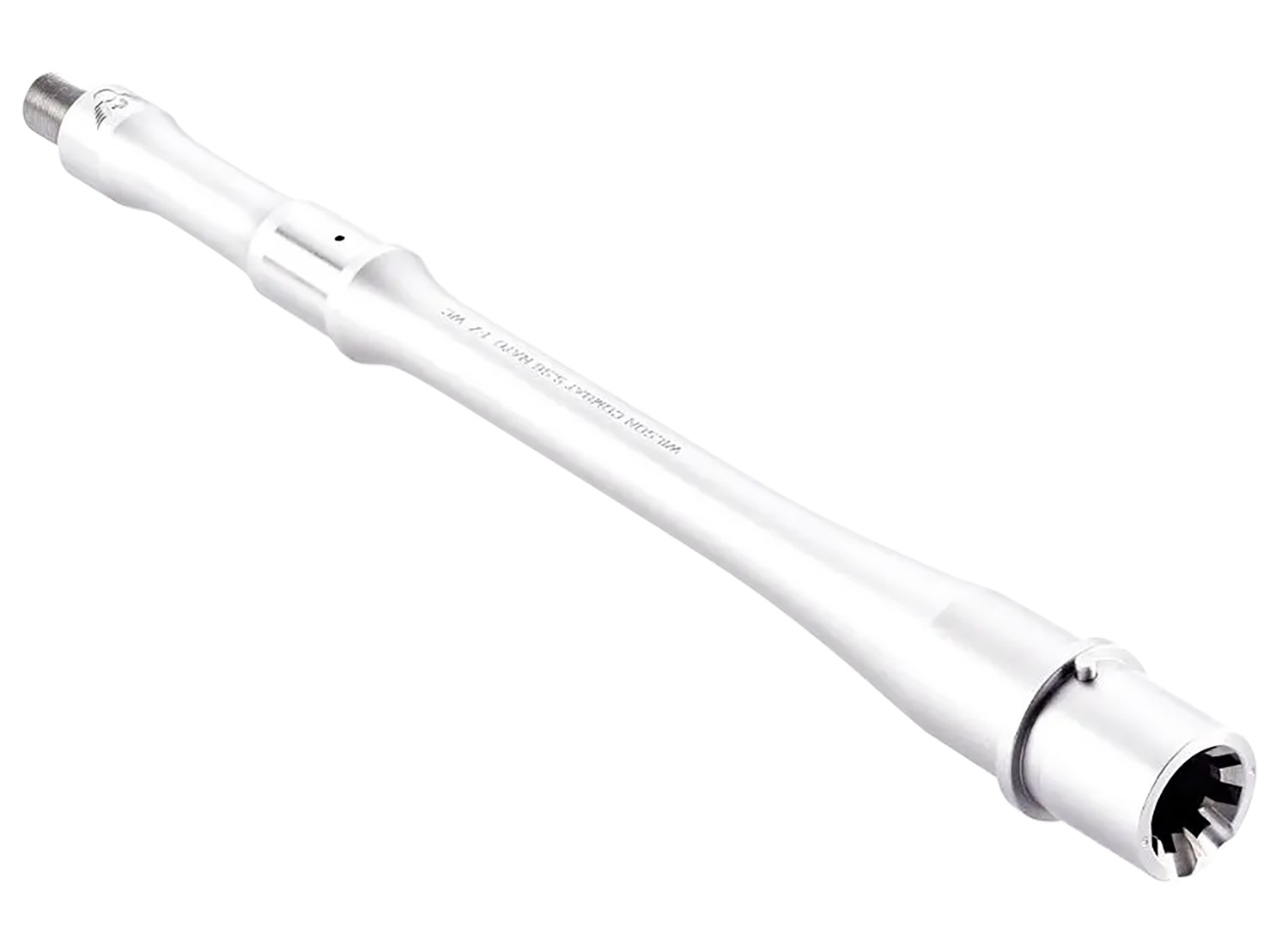 Wilson Combat’s stainless steel, match grade barrel offers superior accuracy, reliability and longevity for your next custom AR rifle project. It is precisely crafted of the finest American-made 416R rifle rated steel on computer controlled equipment to exacting list of technical specifications. The barrel features a hand-polished bore and feedramps, crisp CNC markings, precision muzzle crown and a chamber and gas port optimized for reliability.